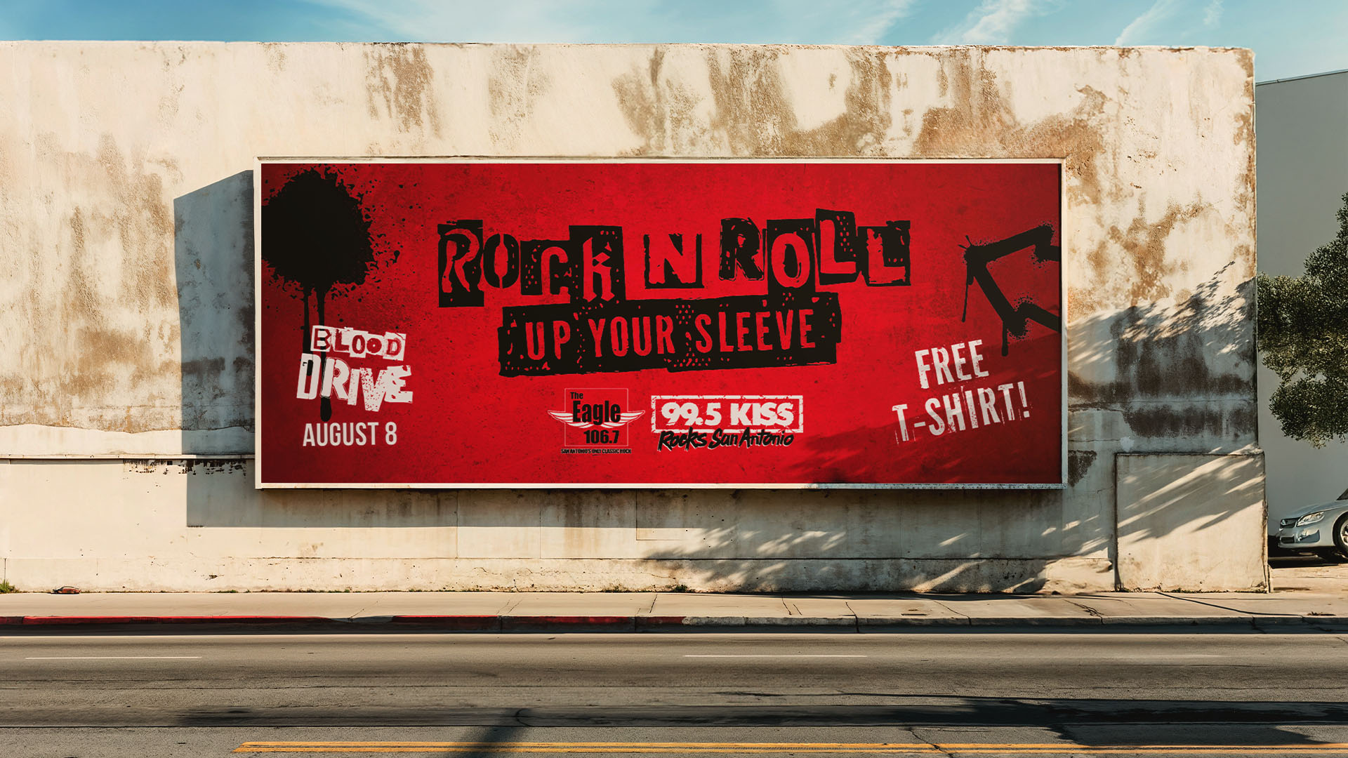 South Texas Blood & Tissue wanted to evolve their long-running Rock N Roll Up Your Sleeve blood drive into something that felt fresh for 2025. The goal was to push attendance and donor sign-ups while keeping the event rooted in its music-driven heritage. This year, the request was to re-energize the look and create updated swag items that donors would be excited to wear and share.